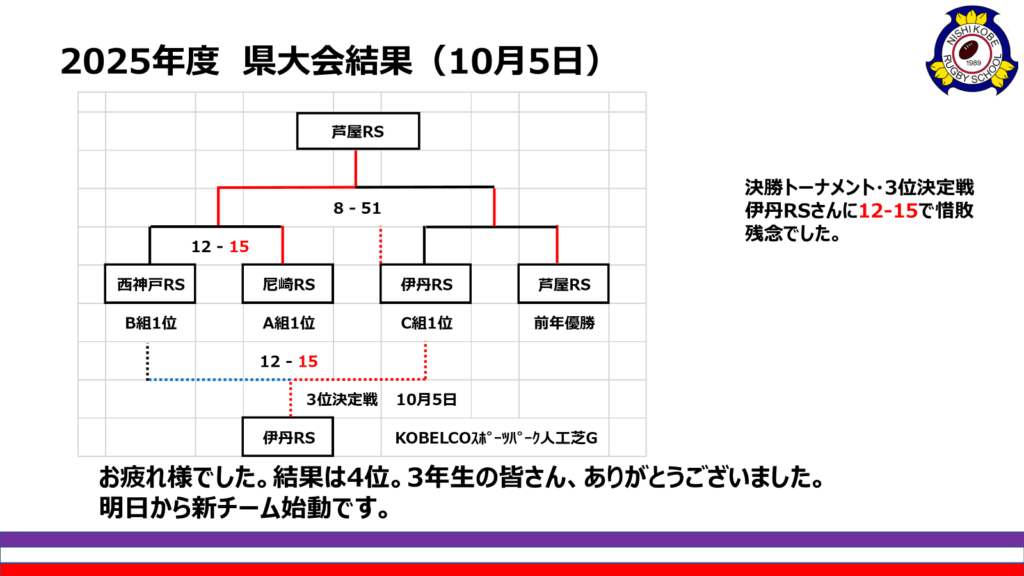 決勝トーナメント・3位決定戦。伊丹RSさんと。